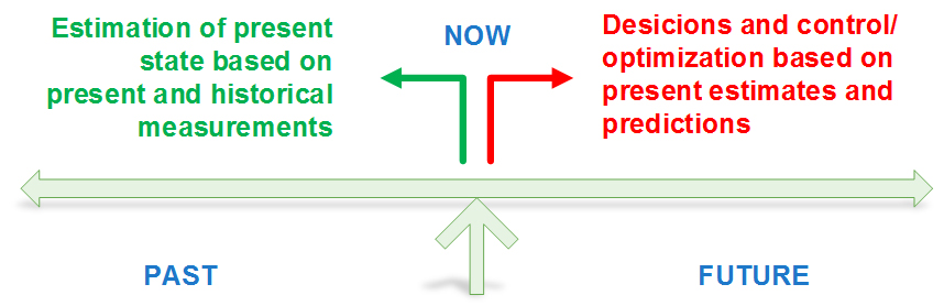 as part of a soft sensor or a Kalman filter for state estimation and as part of some type of model based control algorithm to compute the best control action. These principles of model-used is shown in the figure to the left